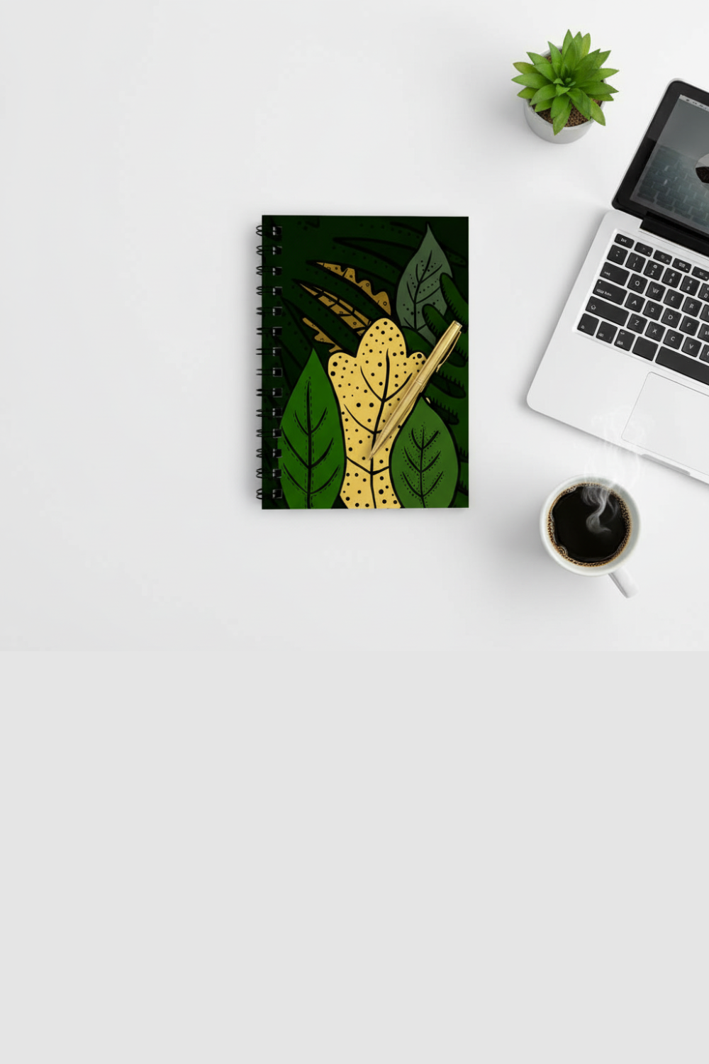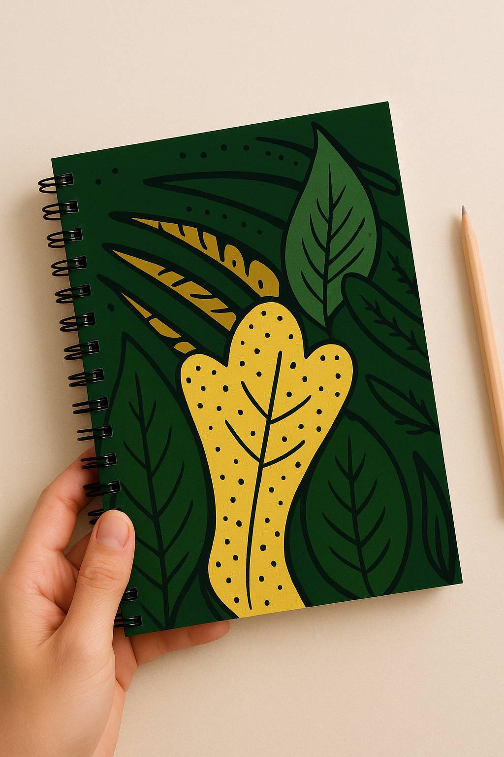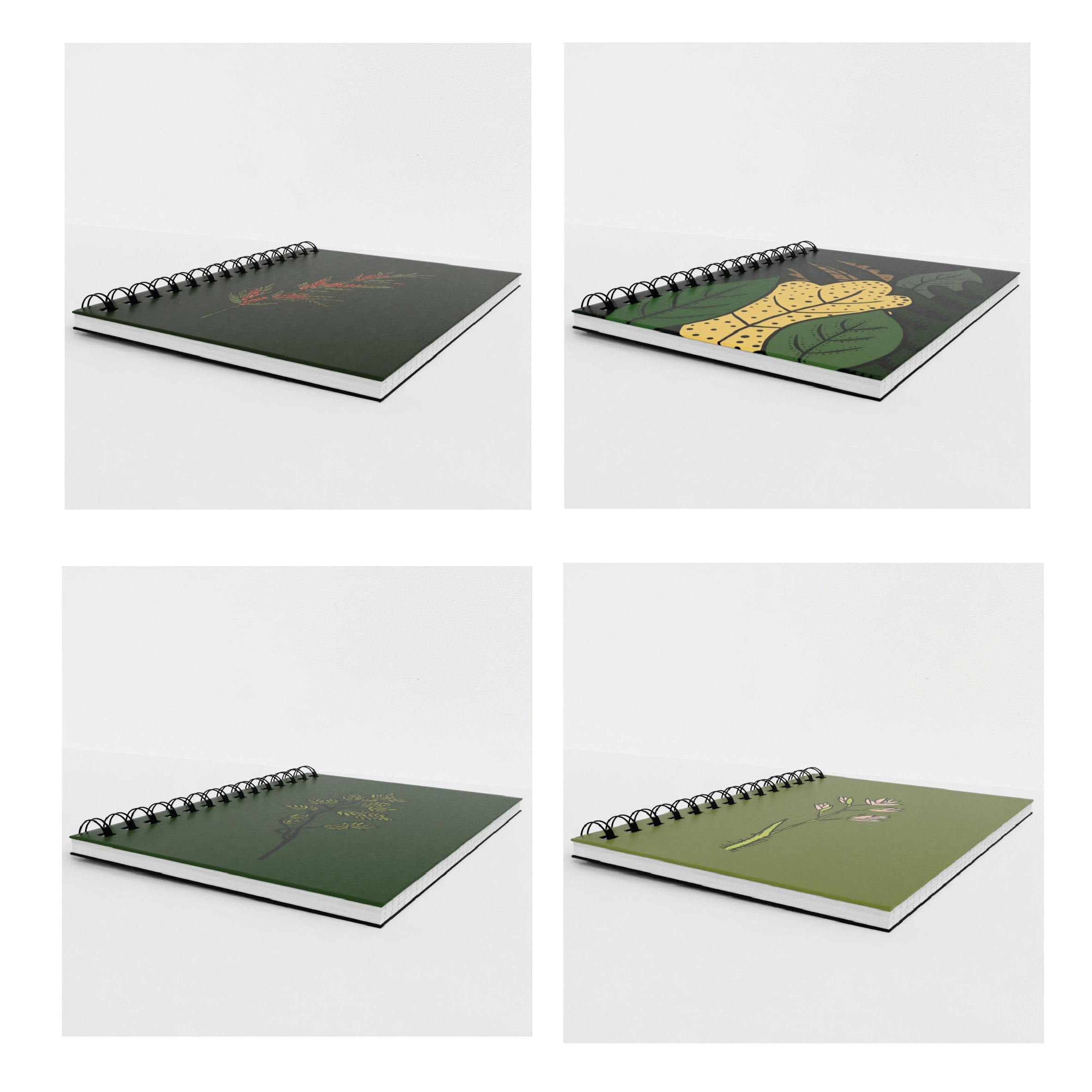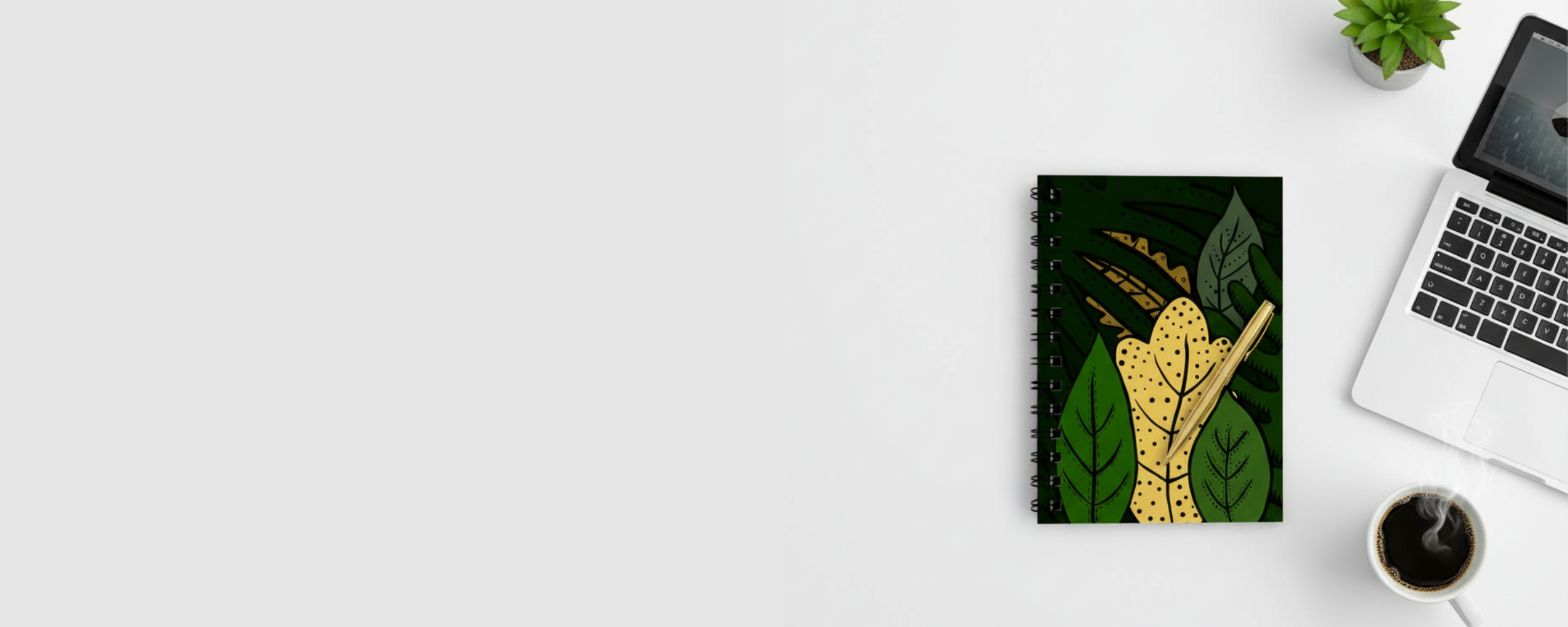 Les illustrations proposées sur les carnets ont pour thème principal la nature et l’écologie, avec des dominantes vertes et naturelles, afin de refléter la fraîcheur, la vitalité et l’harmonie. L’idée est de créer une identité visuelle cohérente avec notre marque, moderne, inspirante et respectueuse de l’environnement, tout en laissant la possibilité au client de personnaliser son carnet avec ses propres images ou phrases.